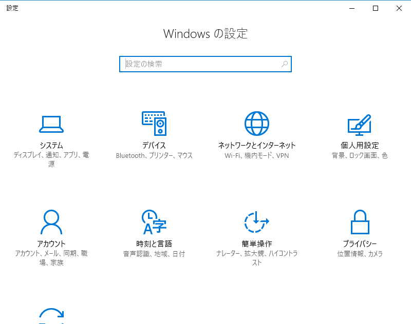 <1> [Windows]キー+[i]キーで「Windowsの設定」画面を表示します。